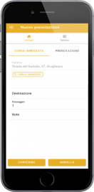 E’ possibile prenotare una corsa taxi, impostando data e ora in cui si desidera ottenere il servizio, con la facoltà di impostare eventuali dati aggiuntivi inerenti numero di passeggeri, tipologia di pagamento, etc…